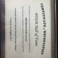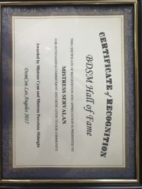 I didn’t attend DomConLA last year – however in my absence I was awarded entry into the BDSM Hall of Fame in recognition of my commitment to the International FemDom and wider BDSM community over the past 20 years.