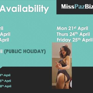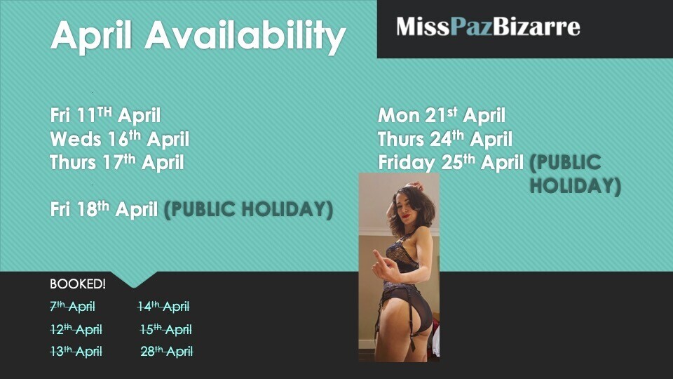 escort diary® of Paz Bizarre: April Availability – Book Now or Miss Out!