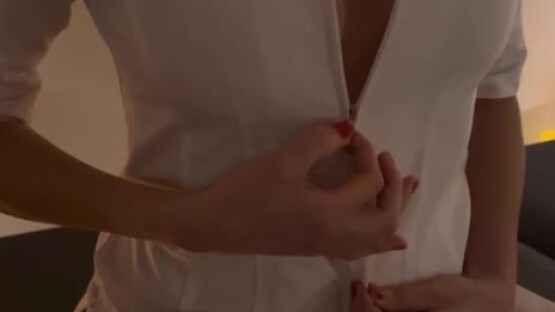 Picture this, you open the door only to be welcomed by a stunning brunette in heels, a mini skirt revealing long (very long) athletically toned and tanned legs, a lacy bra and sheer long sleeved lace up shirt concealing beautiful natural and responsive breasts and a face containing piercing blue eye... -